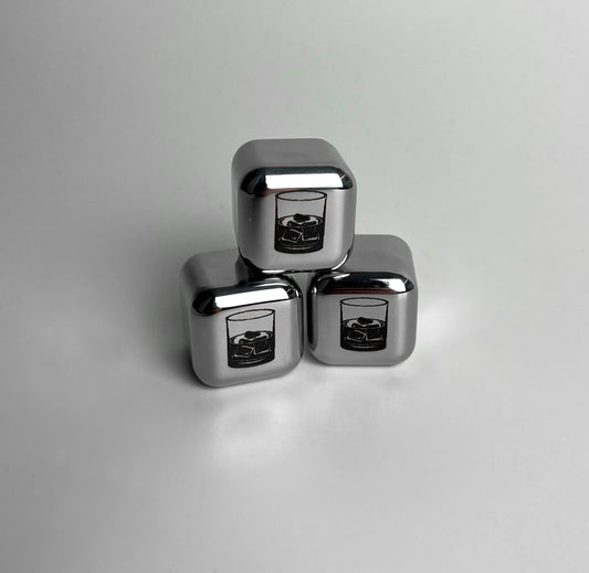 Engraved Premium Gift Set of 8 Stainless Steel Metal Ice Cubes Whiskey Stones